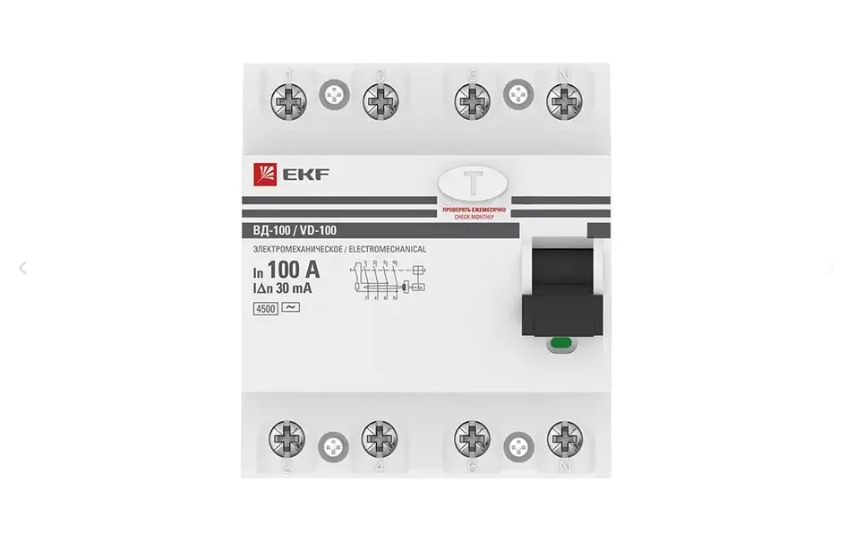 Устройство защитного отключения УЗО ВД-100 4P 16А/30мА (электромеханическое) EKF PROxima