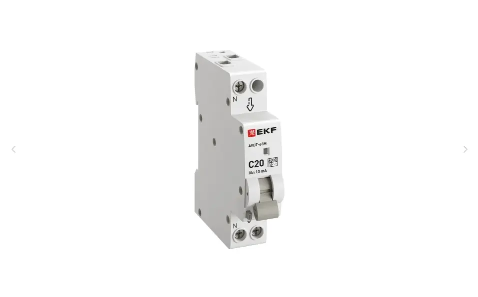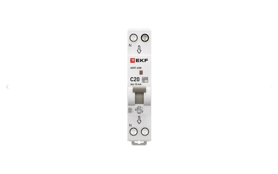 Диф. автомат 20А 10мА 1мод. х-ка С эл. тип AС 6кА АВДТ-63М EKF
