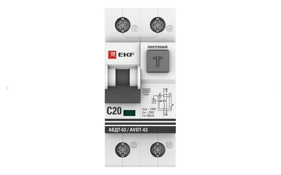 Автоматический выключатель дифференциального тока АВДТ-63 EKF PROxima представляет аппарат, сочетающий функции автоматического выключателя с электромеханическим или электронным УЗО. При обнаружении автоматическим выключателем в защищаемом участке сети тока утечки (повреждения) на землю или сверхтока (тока перегрузки иликороткого замыкания) происходит срабатывание устройства, приводящее к отключению защищаемой сети. Возможна коммутация алюминиевым и медным проводником.Автоматический выключатель дифференциального тока малогабаритный АВДТ-63М EKF PROxima представляет аппарат, сочетающий функции автоматического выключателя с электронным УЗО типа АС в компактном корпусе шириной один модуль. При обнаружении автоматическим выключателем на защищаемом участке сети тока утечки (повреждения) на землю или сверхтока (тока перегрузки или короткого замыкания) происходит срабатывание устройства, приводящее к отключению защищаемой сети. Особое отличие дифференциальных автоматических выключателей EKF с электронным УЗО – в наличии блока защиты от перенапряжения. Возможна коммутация алюминиевым и медным проводом.