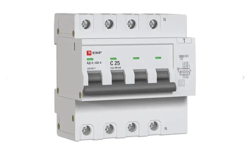 Дифференциальный автоматический выключатель АД-2(4) (S) EKF PROxima представляет собой аппарат, сочетающий функции автоматического выключателя с устройством защитного отключения. При обнаружении автоматическим выключателем в защищаемом участке сети тока утечки (повреждения) на землю или сверхтока (тока перегрузки или короткого замыкания) происходит срабатывание устройства, приводящее к отключению защищаемой сети. Особое отличие дифференциальных автоматов EKF – в наличии встроенного блока защиты от перенапряжения. АД-2 и АД-4 EKF PROxima выпускаются в стандартном и селективном (АД-2S, АД-4S) исполнениях.