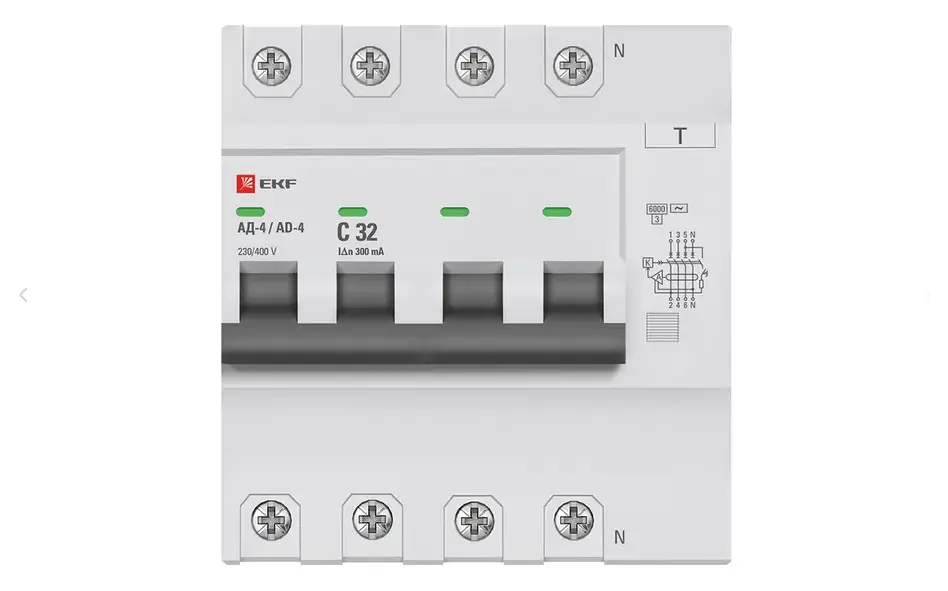 Дифференциальный автомат АД-4 32А/300мА (хар. C, AC, электронный) 6кА EKF PROxima