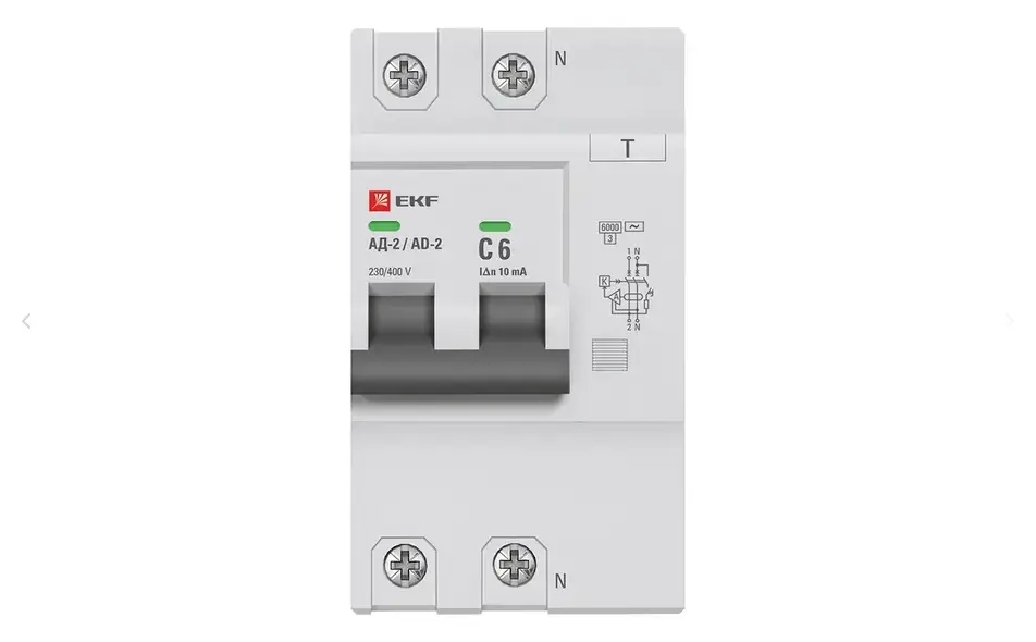 Диф. автомат 2Р 6А 10мА тип АС х-ка C эл. 6кА АД-2 EKF