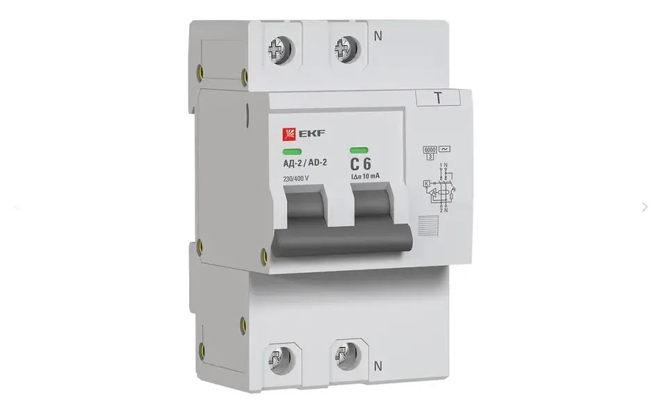 Выключатель автоматический дифференциальный (дифавтомат) АД-2 применяется в электрических цепях переменного тока номинального напряжения 230В и частотой 50 Гц. Предназначен для защиты людей от поражения электрическим током при случайном прикосновении к открытым проводящим частям электроустановки. Защищает электроустановки (ЭО) при повреждении изоляции проводников и неисправностях ЭО, предотвращает возгорания и пожары, возникающие вследствие протекания токов утечки и развивающихся из них коротких замыканий, замыканий на корпус и замыканий на землю. Обеспечивает автоматическое отключение участка электрической сети при перегрузках и токах короткого замыкания.