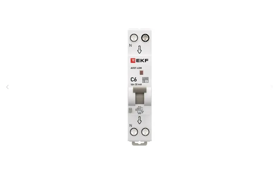 Диф. автомат 6А 30мА 1мод. х-ка С эл. тип AС 6кА АВДТ-63М EKF