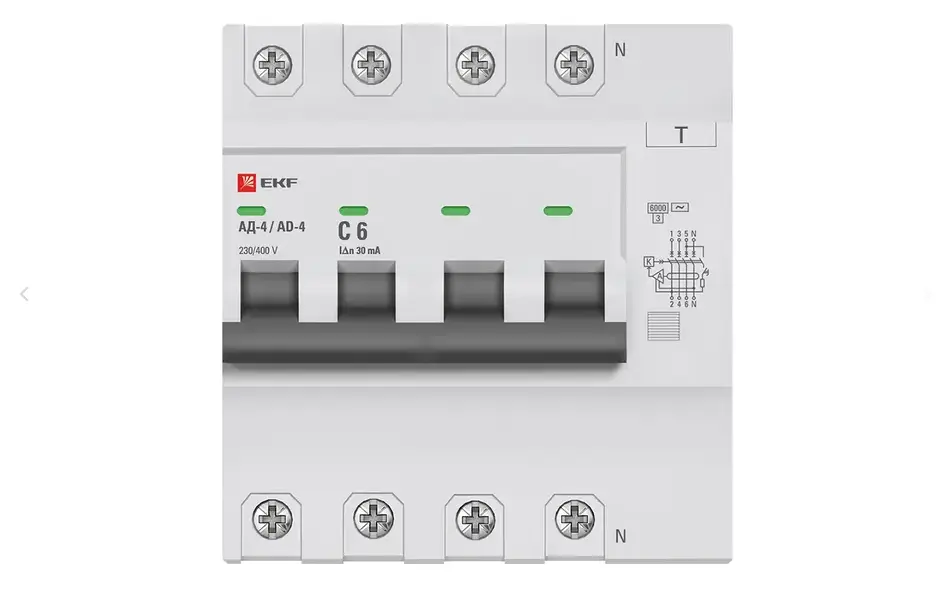 Дифференциальный автоматический выключатель АД-2(4) (S) EKF PROxima представляет собой аппарат, сочетающий функции автоматического выключателя с устройством защитного отключения. При обнаружении автоматическим выключателем в защищаемом участке сети тока утечки (повреждения) на землю или сверхтока (тока перегрузки или короткого замыкания) происходит срабатывание устройства, приводящее к отключению защищаемой сети. Особое отличие дифференциальных автоматов EKF – в наличии встроенного блока защиты от перенапряжения. АД-2 и АД-4 EKF PROxima выпускаются в стандартном и селективном (АД-2S, АД-4S) исполнениях.