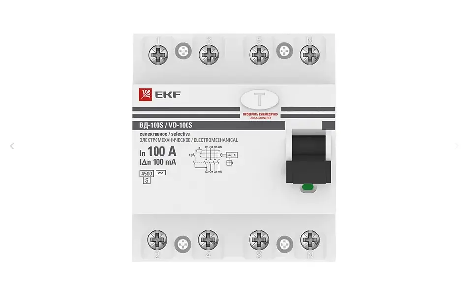 Устройство защитного отключения селективное 4P 100А/100мА (электромеханическое) EKF PROxima