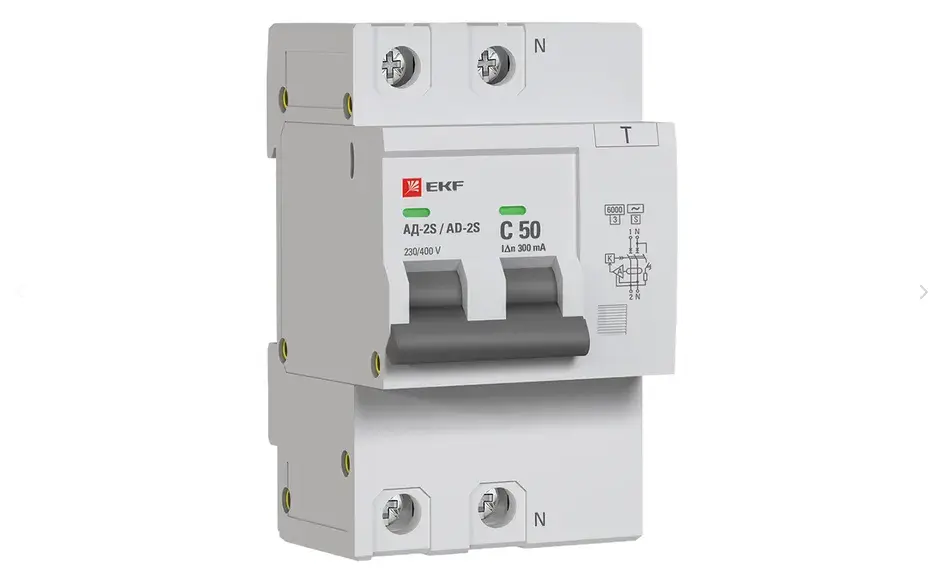 Дифференциальный автомат АД-2 S 50А/300мА (хар. C, AC, электронный) 6кА EKF PROxima
