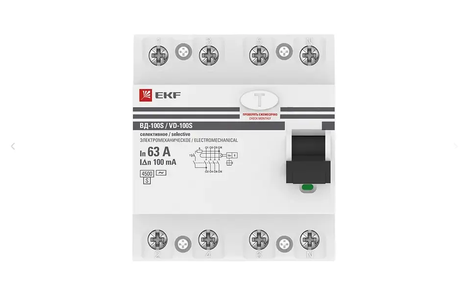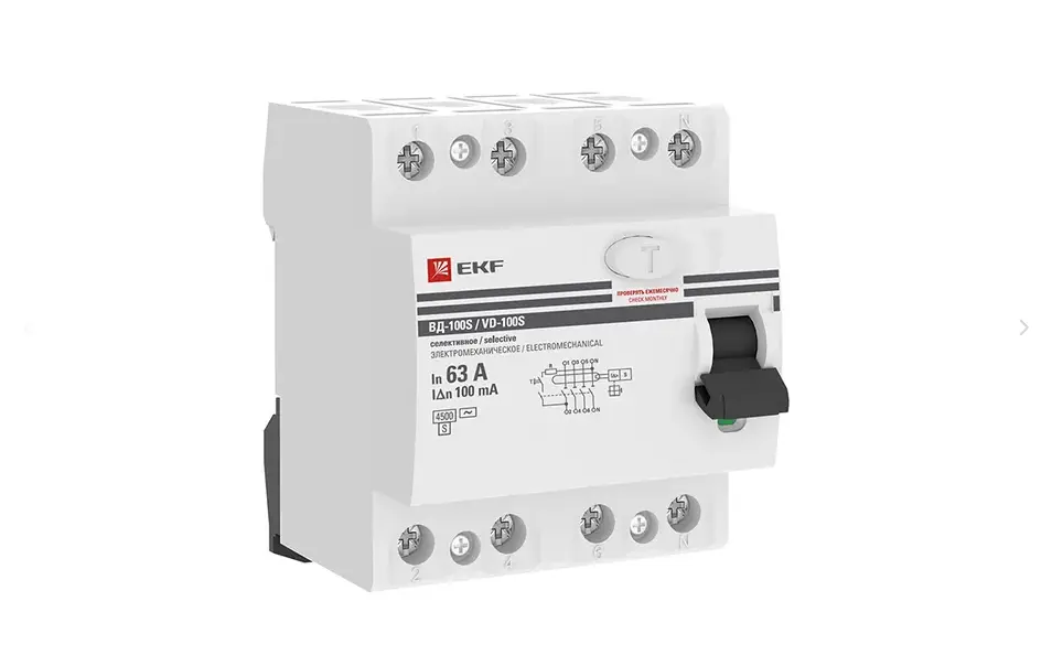 Устройство защитного отключения селективное 4P 63А/100мА (электромеханическое) EKF PROxima