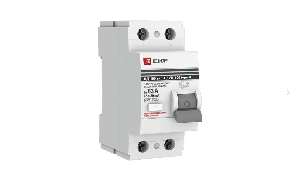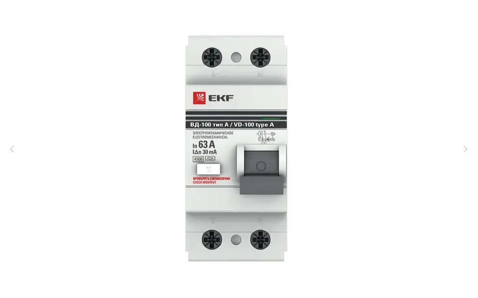 Устройство Защитного Отключения ВД-100 2P 63А/ 30мА (эл-мех, тип А) EKF PROxima