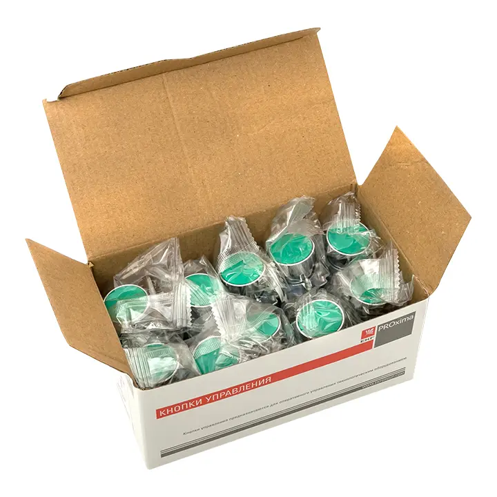 Широкий ассортимент кнопок различных цветов, количества и типа контактов, характера коммутации, материалов и исполнения ручек управления
