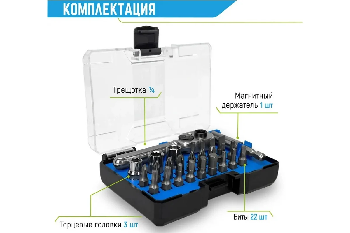 Выполнен из комплексно-легированной стали с повышенным содержанием углерода в сочетании с надежным храповым механизмом трещотки набор комфортно прослужит длительный срок.