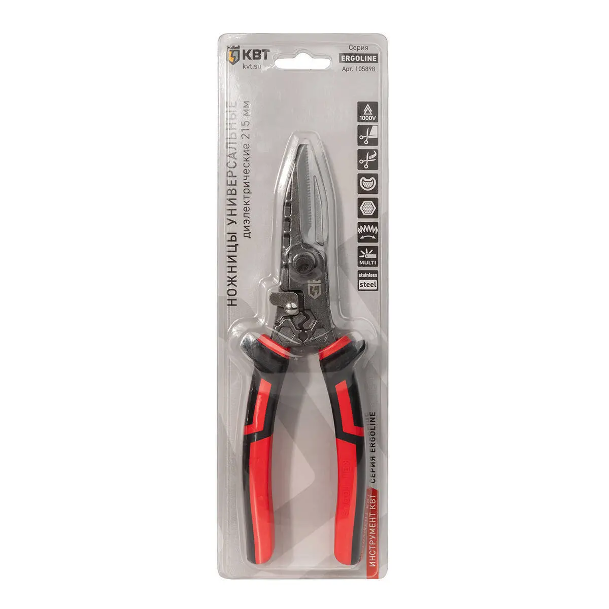 | 105898 | Ножницы универсальные диэлектрические 215 мм серия ERGOLINE | ножницы | ручной | алюминиевый провод/листовая сталь/стальная лента/медный провод/кабельный короб/картон, пластик, резина, дерево | 6 | 0.7 | блокиратор рукояток/возвратная пружина/диэлектрические рукоятки | 215 |