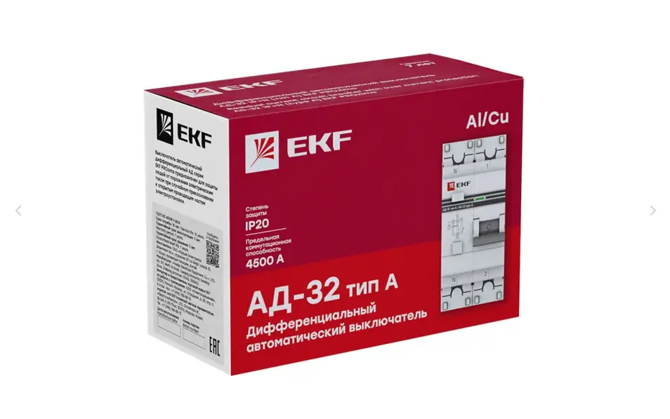 Дифференциальный автоматический выключатель АД-32 EKF PROxima представляет собой аппарат, сочетающий функции автоматического выключателя с устройством защитного отключения. При обнаружении автоматическим выключателем в защищаемом участке сети тока утечки (повреждения) на землю или сверхтока (тока перегрузки или короткого замыкания) происходит срабатывание устройства, приводящее к отключению защищаемой сети. Ассортимент АД-32 дополнен дифавтоматами АД-32 тип А и АД-32 селективными.
