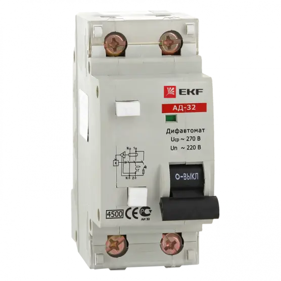 Дифференциальный автомат АД-32 63А/30мА (характеристика C, тип AC) 4,5кА EKF
