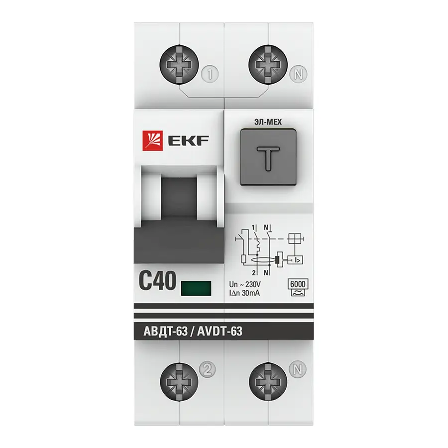 Автоматический выключатель дифференциального тока АВДТ-63 EKF PROxima представляет аппарат, сочетающий функции автоматического выключателя с электромеханическим или электронным УЗО. При обнаружении автоматическим выключателем в защищаемом участке сети тока утечки (повреждения) на землю или сверхтока (тока перегрузки иликороткого замыкания) происходит срабатывание устройства, приводящее к отключению защищаемой сети. Возможна коммутация алюминиевым и медным проводником.Автоматический выключатель дифференциального тока малогабаритный АВДТ-63М EKF PROxima представляет аппарат, сочетающий функции автоматического выключателя с электронным УЗО типа АС в компактном корпусе шириной один модуль. При обнаружении автоматическим выключателем на защищаемом участке сети тока утечки (повреждения) на землю или сверхтока (тока перегрузки или короткого замыкания) происходит срабатывание устройства, приводящее к отключению защищаемой сети. Особое отличие дифференциальных автоматических выключателей EKF с электронным УЗО – в наличии блока защиты от перенапряжения. Возможна коммутация алюминиевым и медным проводом.Техническая спецификация