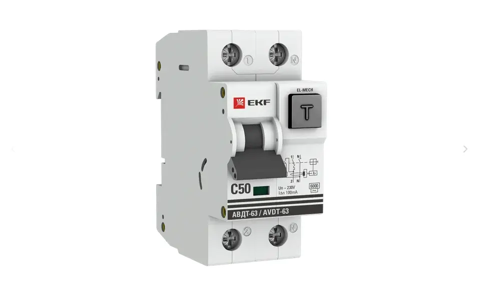 Автоматический выключатель дифференциального тока АВДТ-63 EKF PROxima представляет аппарат, сочетающий функции автоматического выключателя с электромеханическим или электронным УЗО. При обнаружении автоматическим выключателем в защищаемом участке сети тока утечки (повреждения) на землю или сверхтока (тока перегрузки иликороткого замыкания) происходит срабатывание устройства, приводящее к отключению защищаемой сети. Возможна коммутация алюминиевым и медным проводником.Автоматический выключатель дифференциального тока малогабаритный АВДТ-63М EKF PROxima представляет аппарат, сочетающий функции автоматического выключателя с электронным УЗО типа АС в компактном корпусе шириной один модуль. При обнаружении автоматическим выключателем на защищаемом участке сети тока утечки (повреждения) на землю или сверхтока (тока перегрузки или короткого замыкания) происходит срабатывание устройства, приводящее к отключению защищаемой сети. Особое отличие дифференциальных автоматических выключателей EKF с электронным УЗО – в наличии блока защиты от перенапряжения. Возможна коммутация алюминиевым и медным проводом.