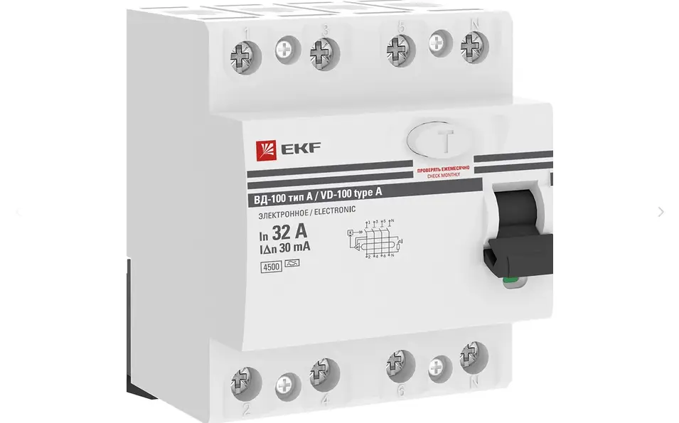 Устройство Защитного Отключения ВД-100 4P 32А/30мА (эл-мех, тип А) EKF PROxima