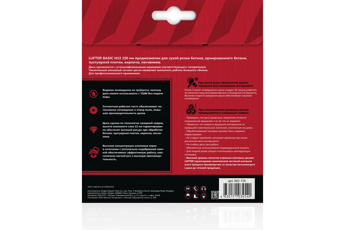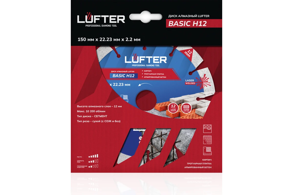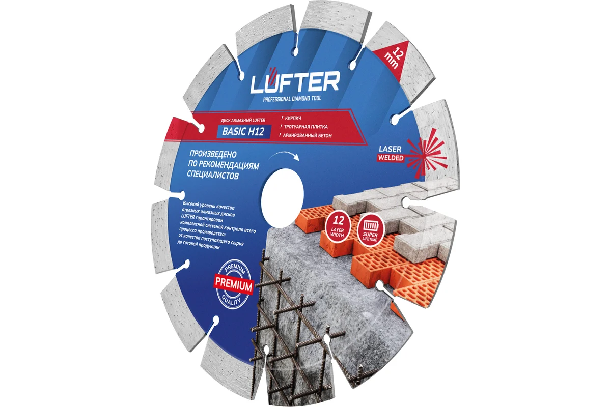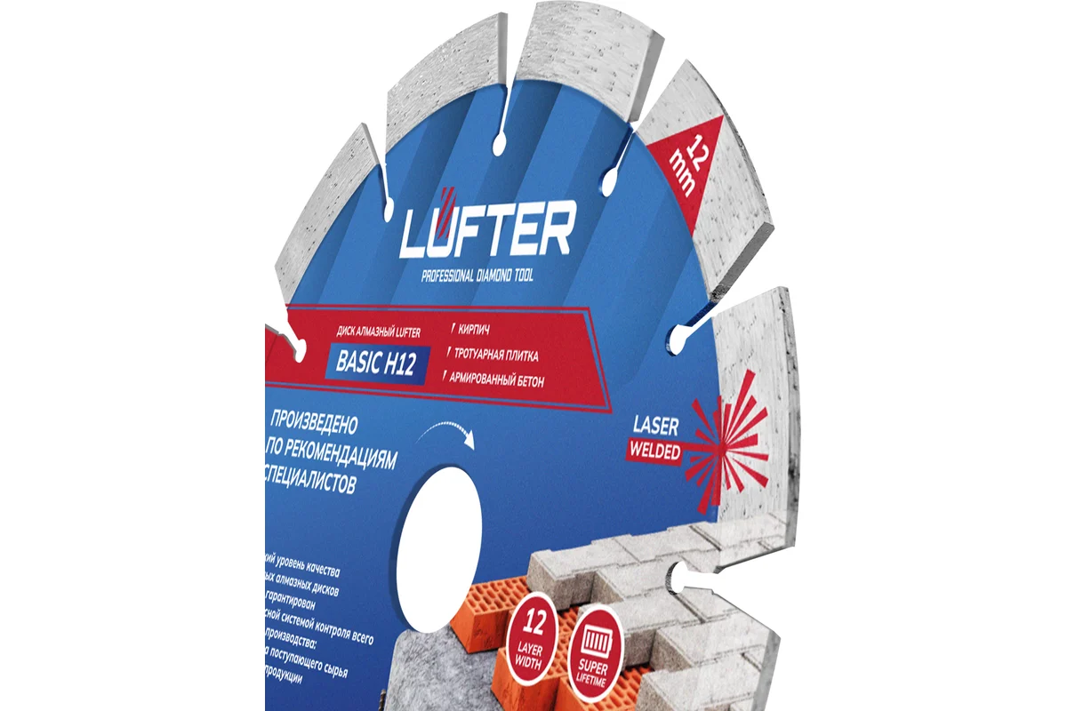 LUFTER BASIC H12 150 мм предназначен для сухой резки бетона, армированного бетона, тротуарной плитки, кирпича, песчаника.