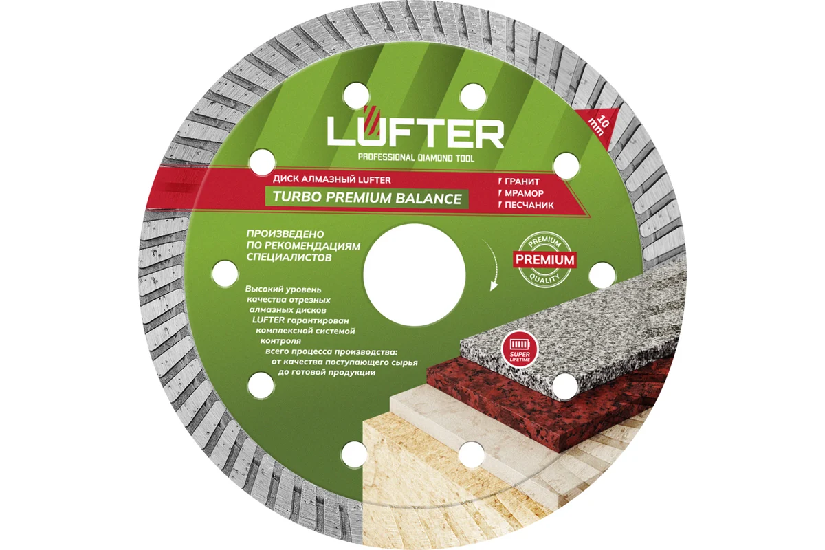 LUFTER TURBO PREMIUM BALANCE 125 мм предназначен для сухой резки мрамора, всех видов гранита, а также черного гранита тип Габбро.