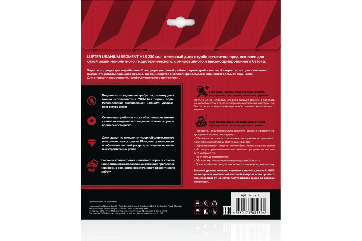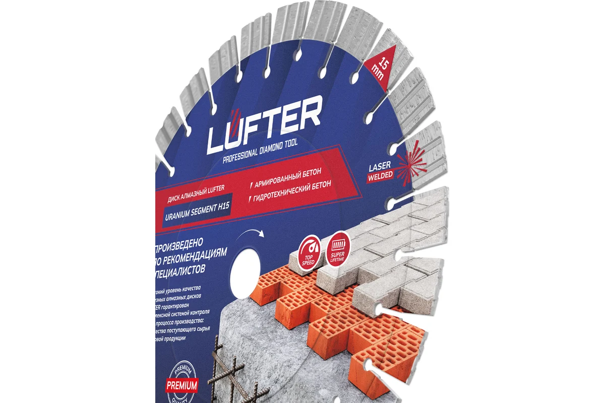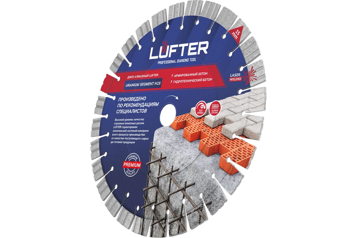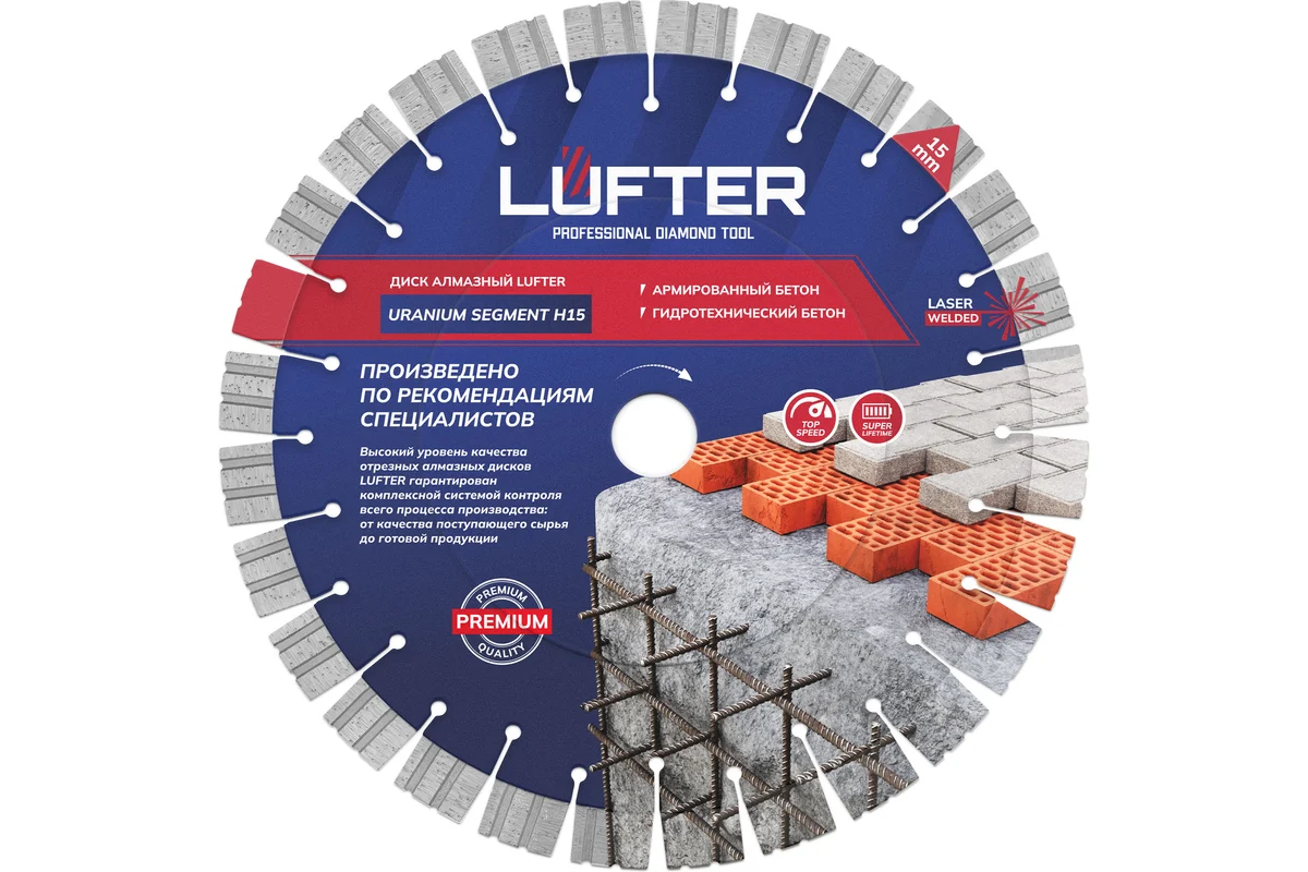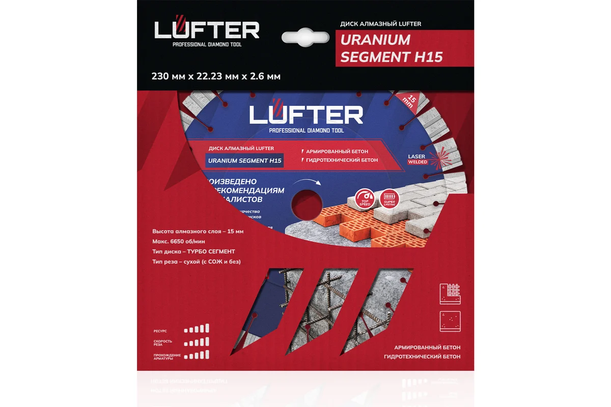 LUFTER URANIUM SEGMENT H15 230 мм - алмазный диск с турбо сегментом, предназначен для сухой резки монолитного, гидротехнического, армированного и высокоармированного бетона.