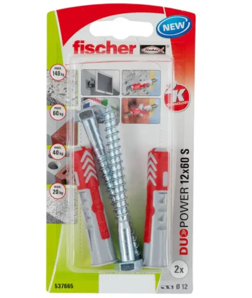 Дюбель универсальный DuoPower 12x60 мм, с шурупом, 2 шт.