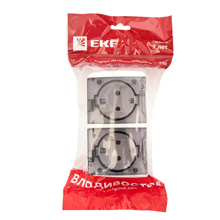 Владивосток Розетка 2-местная 16А с заземлением с прозрачной крышкой IP54 EKF