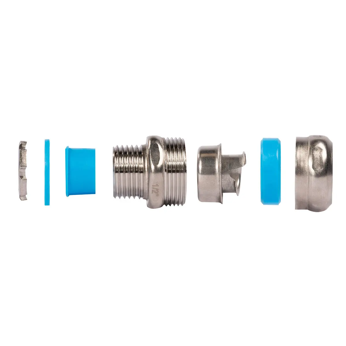 | 83754 | ВМ (INOX) 15 | фитинг | нержавеющая сталь AISI 304 | 1/2″ | 15 | 14.6 | 11 | IP 54 | -60...+120 |