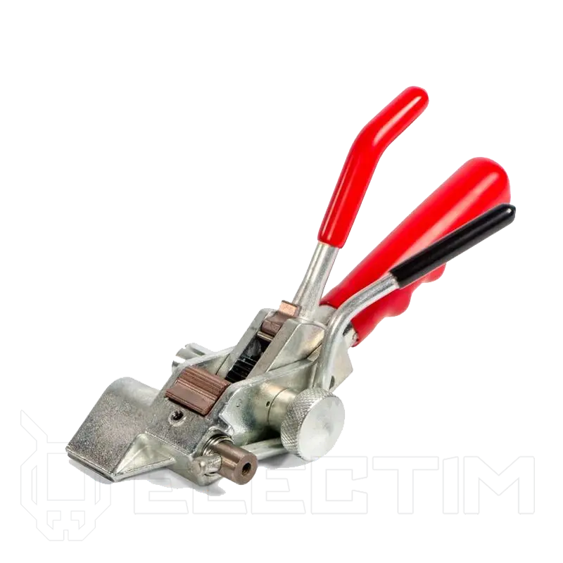 Инструмент для натяжения стальной ленты толщиной до 1 мм и возможность установки рукоятки в двух положениях - вертикальном и горизонтальном. |
