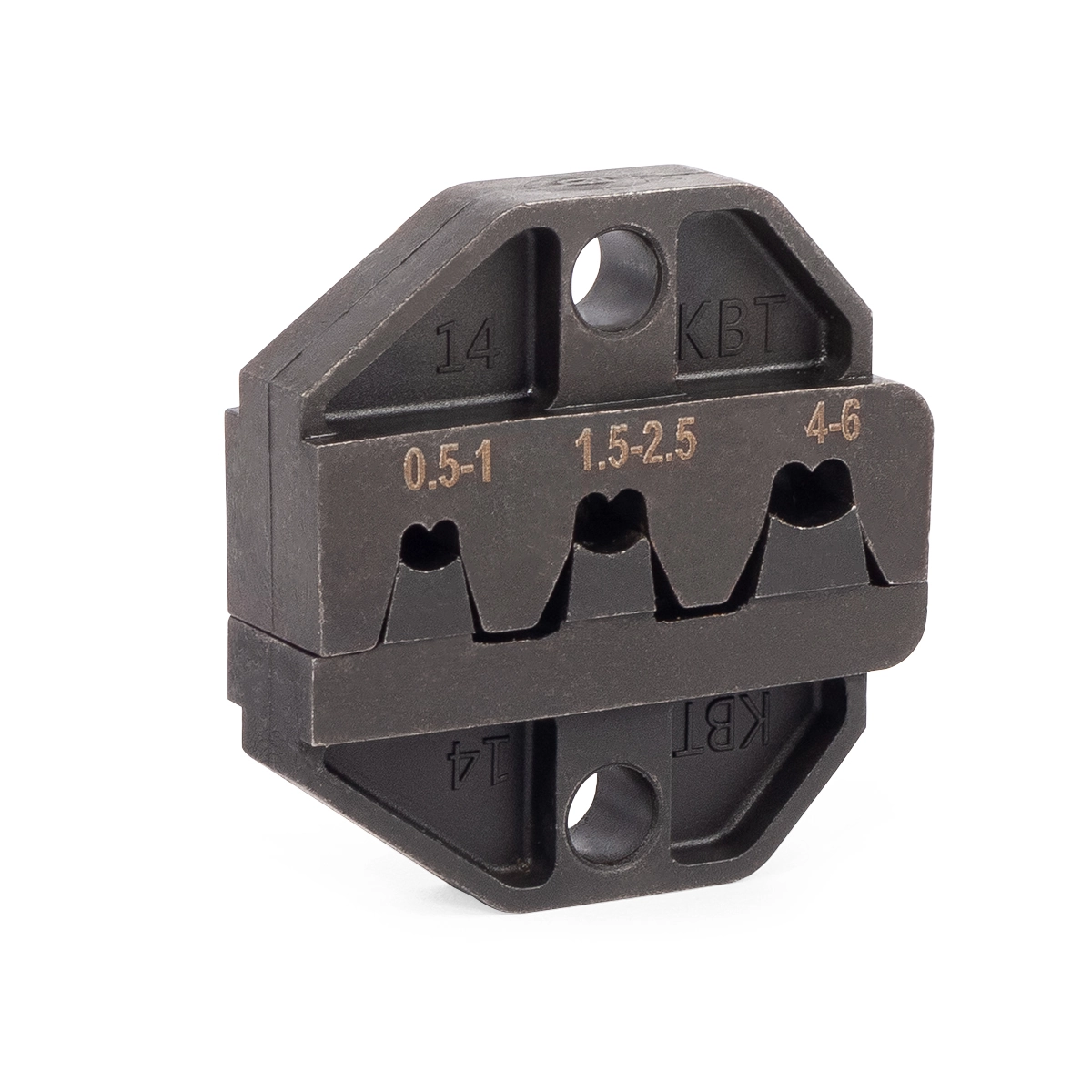 Принципиально существует два типа изолированных наконечников, и соответственно, два варианта обжима. Все наконечники и разъемы с изоляцией красного, синего или желтого цветов обжимаются матрицами МПК-01, 10, 11 или 12 «КВТ» специальным инструментом ПОВЕРХ ИЗОЛИРОВАННОЙ МАНЖЕТЫ. Втулочные изолированные наконечники обжимаются ТОЛЬКО ПОВЕРХ МЕТАЛЛИЧЕСКОЙ КОНТАКТНОЙ ЧАСТИ специализированными пресс-клещами (модели ПКВ, ПКВк, пресс-клещи с матрицами 02, 03 или 06 «КВТ») в зависимости от сечения наконечника. Более подробную информацию можно посмотреть в разделах «Рекомендации по опрессовке изолированных наконечников», «Рекомендации по опрессовке втулочных наконечников».
