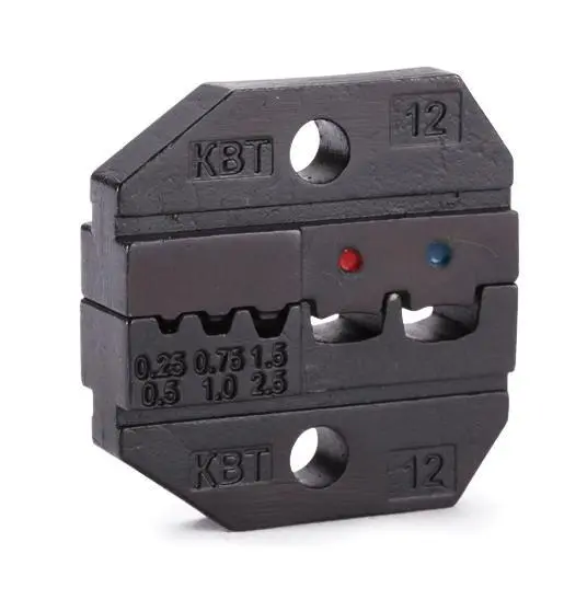 • Скорее всего, речь идет об инструменте для опрессовки изолированных наконечников, оснащенным матрицами тип 01 «КВТ». Эта матрица имеет 3 опрессовочных гнезда, промаркированных точками красного, синего и желтого цветов. На внутренней поверхности каждого гнезда пробит индивидуальный цифровой код, оставляющий отпечаток на пластмассовой манжете после опрессовки. Цифры являются условными обозначениями диапазонов сечений изолированных наконечников с красной, синей и желтой манжетой: «1» — диапазон 0.5-1.5 мм² - для наконечников, разъемов и гильз с красной манжетой; «2» — диапазон 1.5-2.5 мм² - для наконечников, разъемов и гильз с синей манжетой; «6» — диапазон 4.0-6.0 мм² - для наконечников, разъемов и гильз с желтой манжетой. Нетрудно догадаться, что цифры представляют собой округленный до целого максимум каждого диапазона. Идея дополнительной идентификации правильной опрессовки реализована в инструменте торговой марки «КВТ», например, в таких моделях, как СТВ-01,СТК-01. Наличие цифрового кода на матрице облегчает инспекцию после монтажа. Например, если Вы видите на смонтированной разводке в электрическом щитке, что наконечники с красной манжетой имеют отпечатанную цифру «2» на манжете - можно смело предъявлять претензии подрядчику.