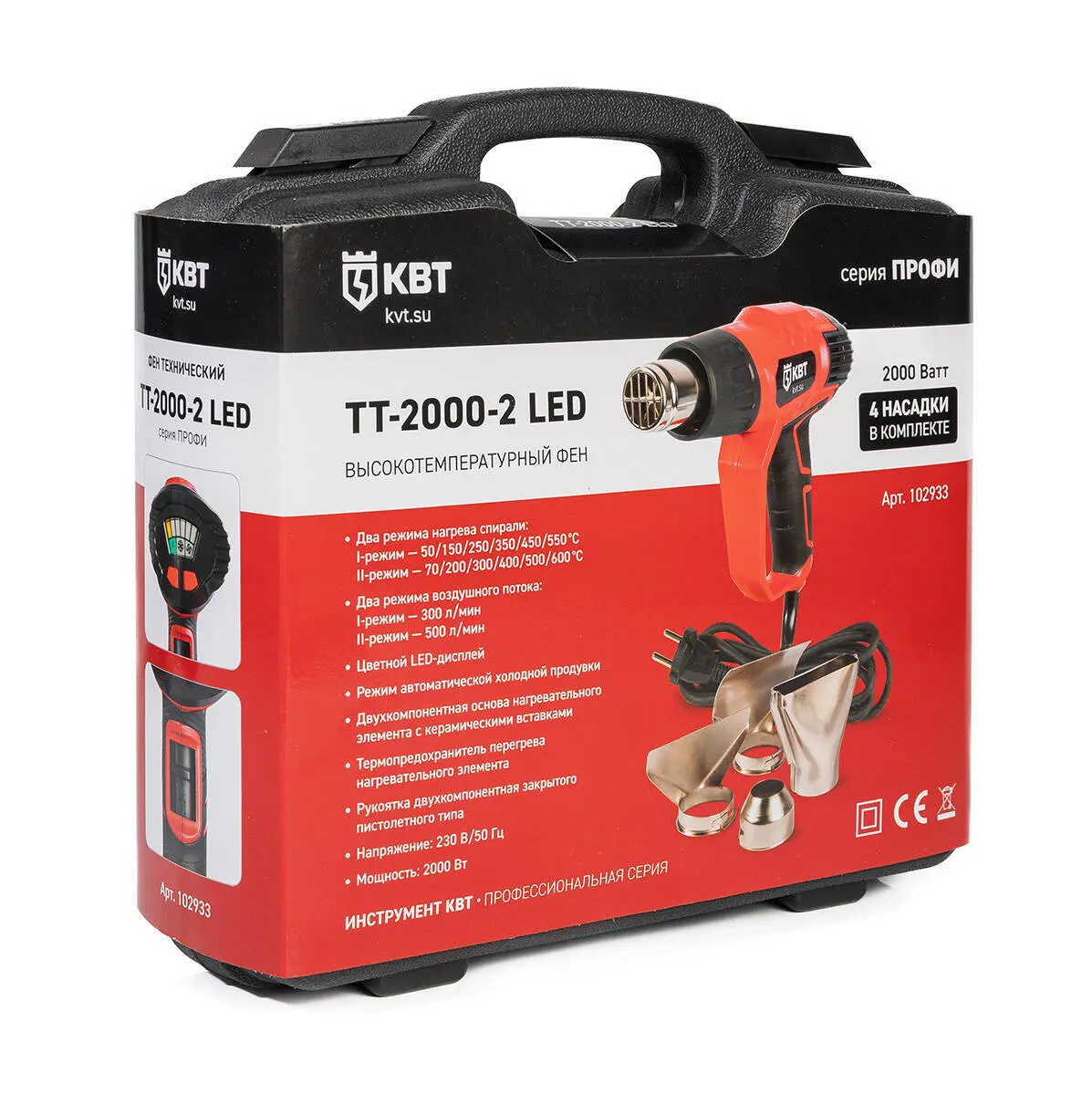 | 102933 | ТТ-2000-2 LED серия ПРОФИ | электрический | поддув воздуха | ПРОФИ | 600 | - фен; - 4 насадки: редукционная, рефлекторная, широкая щелевая, стеклозащитная; - пластиковый кейс |