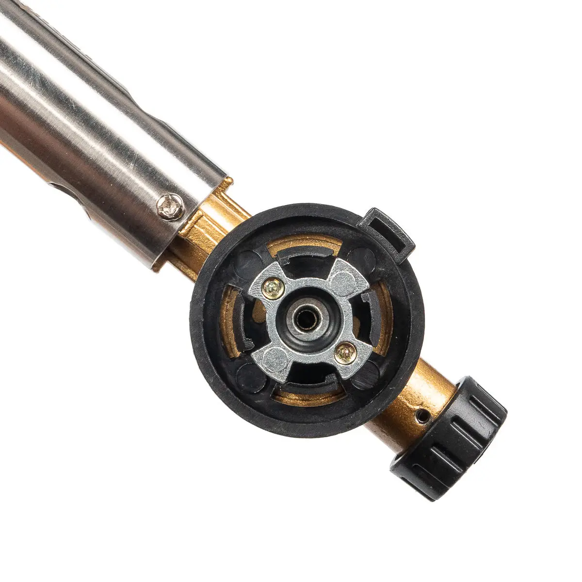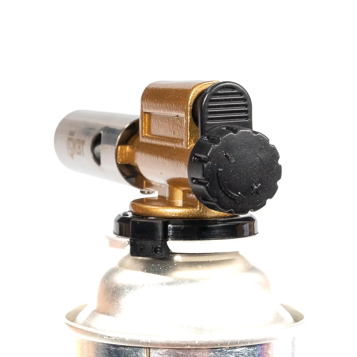 • Регулятор уровня пламени: есть • Время предварительного прогрева: 10 секунд • Расход топлива: 80 г/ч; мощность: 1.10 кВт • Тип газового баллона (соединение): цанговый • Пьезоподжиг включается нажатием на отдельную кнопку • Работа под углом 360° • Цинковый корпус с покрытием • Латунное сопло с кожухом из нержавеющей стали |