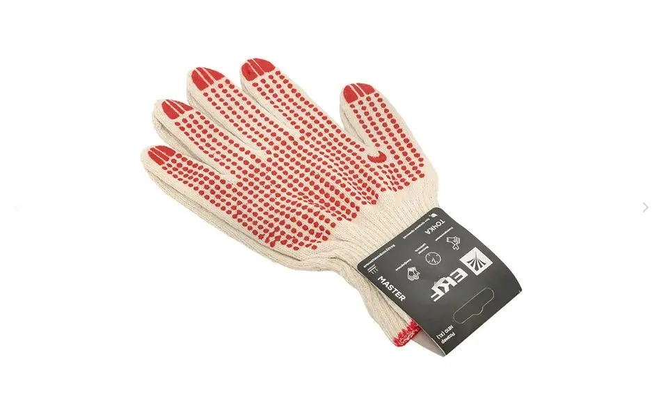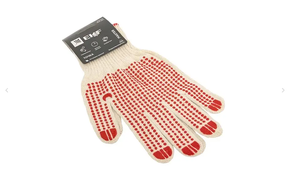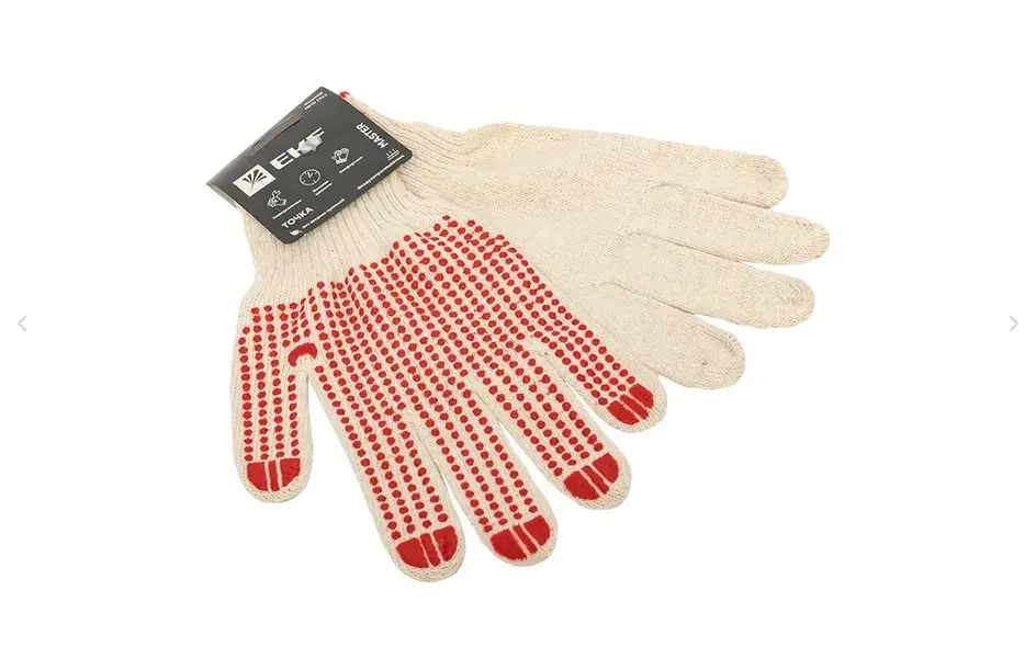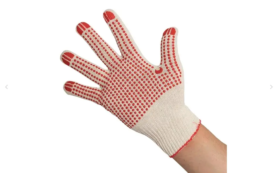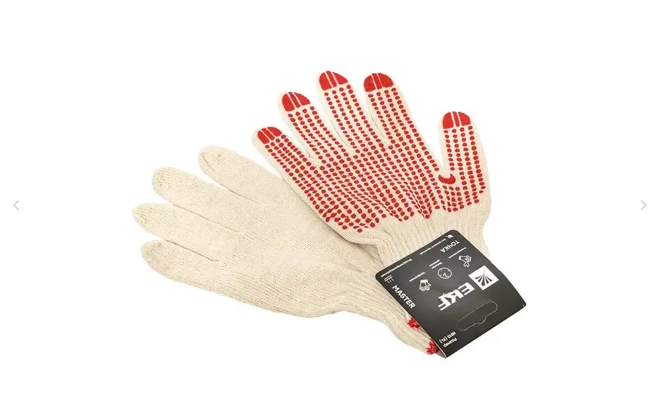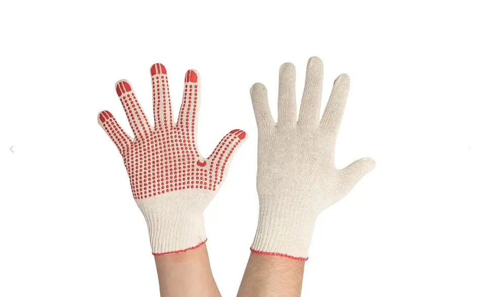 Трикотажные хлопчатобумажные перчатки из смесовой пряжи. Выполнены по технологии бесшовной вязки, что создает повышенный комфорт при работе. ПВХ-покрытие «Точка» обеспечивает высокую стойкость к истиранию и превосходно защищает ладонь
