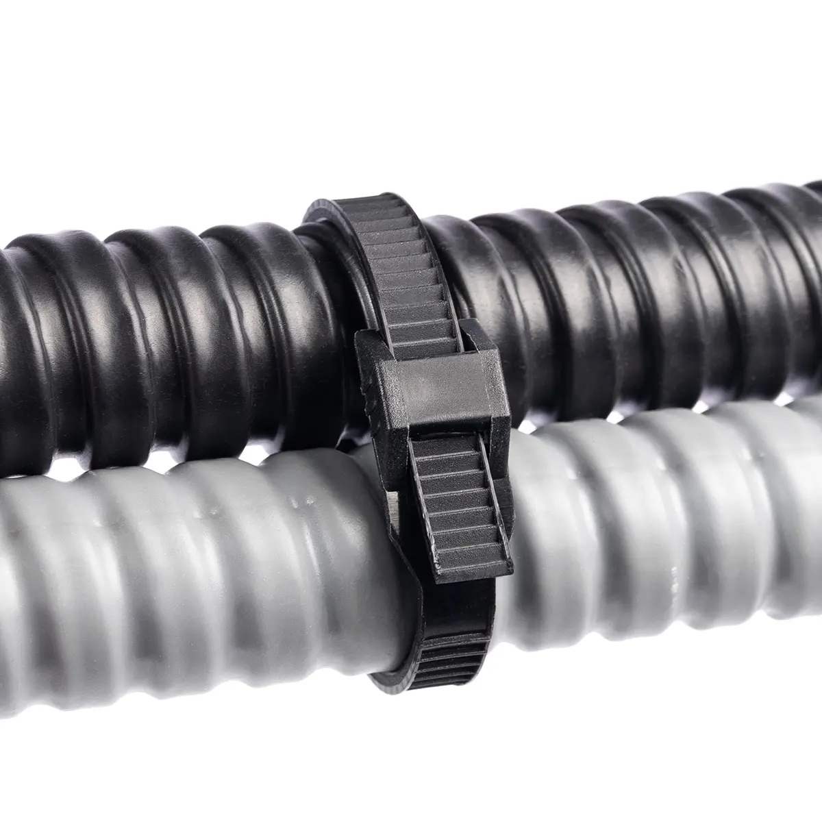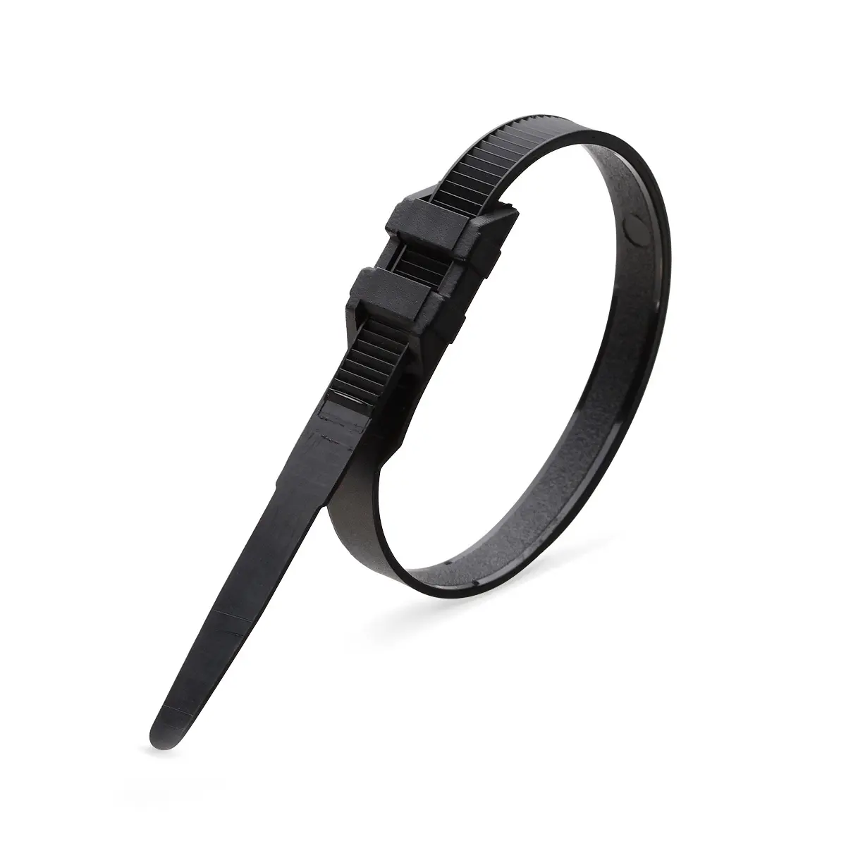 Документация на продукцию| SKU | товарные позиции | Материал | Покрытие | Длина, мм | Ширина, мм | Замковое устройство | Крепление | Максимальный диаметр охвата, мм | Мин. усилие на разрыв, Н | Температура монтажа, °C |