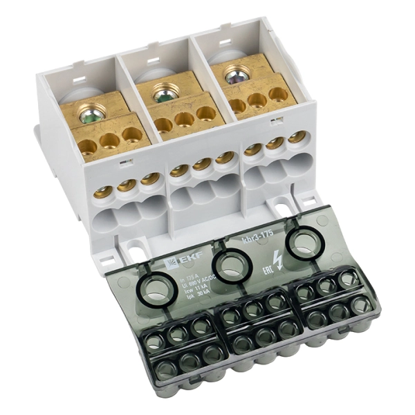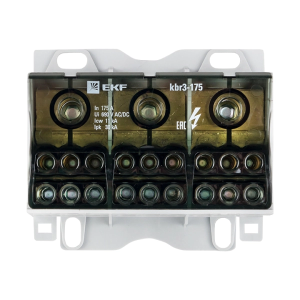 Блок распределительный КБР EKF PROxima предназначен для обеспечения удобного распределения питания в шкафах и используется в качестве переходного клеммника для подключения кабельной жилы большего сечения к нескольким проводникам меньшего сечения, а также для организации главной заземляющей шины (ГЗШ). ГОСТ Р 50030.7.2002