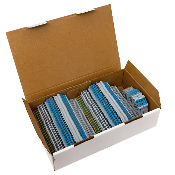 Колодки клеммные JXB-ST JXB-S EKF PROxima самозажимные устанавливаются на DIN-рейку 35 мм и предназначены для использования в распределительных щитах – для подключения и разветвления фазных, нулевых и проводников заземления различных сечений. Особоепреимущество данных клемм – в безвинтовом креплении проводников: используются подпружиненные самозажимные контакты. Подвод проводника осуществляется сверху клеммы. Для отсоединения проводника необходимо нажать отверткой на пружину через отверстие, расположенное сверху клеммы. Рассчитаны на применение в цепях переменного тока с напряжением до 800 В и частотой 50 Гц. Клеммы изготавливаются из огнестойкого полиамида следующих цветов: серый,желто-зеленый (земля). Дополнительно к клеммам выпускаются боковые заглушки для закрытия контактов конечной клеммы, перемычки для разветвления проводников, маркеры и др.