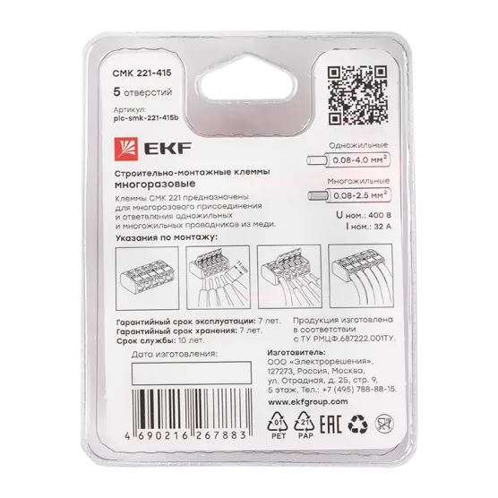Поперечн. сечение жесткого проводника (одно-/многопроволочного) |