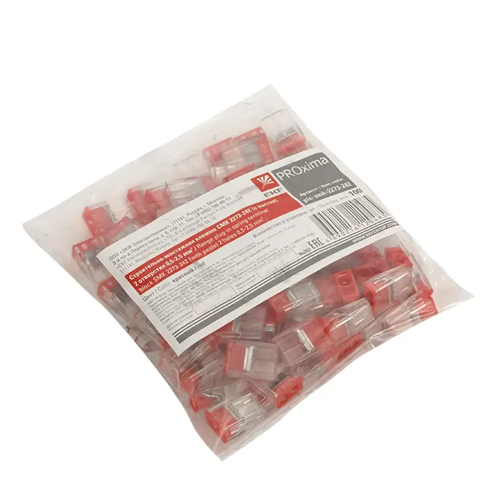 - Клеммы СМК серии 2273 с пастой в груповой упаковке по 50шт и 100шт (в зависимости от типа клеммы), а также в розничной упаковке по 4 шт.