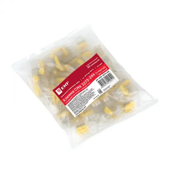 - Клеммы СМК серии 2273 с пастой в груповой упаковке по 50шт и 100шт (в зависимости от типа клеммы), а также в розничной упаковке по 4 шт.