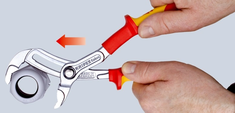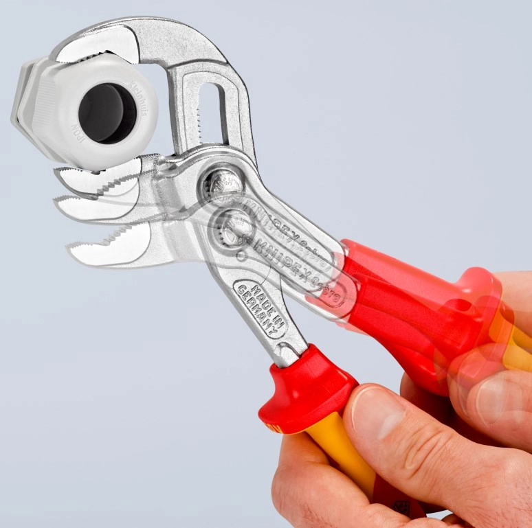 Клещи переставные COBRA® с фиксатором, VDE 1000V, 50 мм (2"), под ключ 46 мм, L-250 мм, Cr-V, хром., 2-комп. рукоятки, T (KNIPEX)