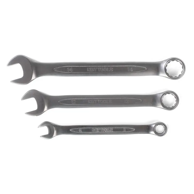 Комбинированный гаечный ключ имеет с одной стороны рожковую часть, с другой — накидную. Это позволяет снимать и затягивать крепеж различных типов: с открытым доступом и в труднодоступных местах. Серия KBT-Professional обеспечивает прочность и долговечность, поэтому комбинированный гаечный ключ — универсальное решение в слесарных работах.