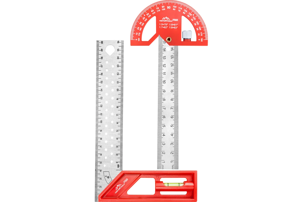 Линейка разметочная VERTEXTOOLS PROFI - это универсальный, многофункциональный измерительный инструмент 7в1 :