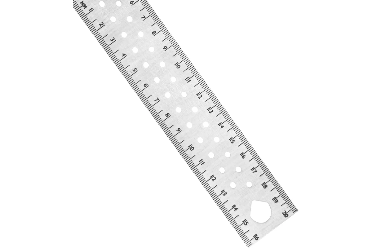Изготовлена линейка из нержавеющей стали 300х25 мм, толщиной 1,7 мм. Нанесена двусторонняя гравированная шкала. Упор выполнен из ABS пластика с углами 90°, 45°с нанесенной шкалой 180°. Крепление с помощью винта или неодимового магнита.