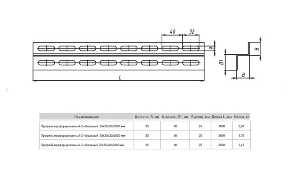 "Z-образные профили - это универсальный тип монтажных изделий, представляющий из себя перфорированный по двум сторонам профиль. Предназначен для легких и средних нагрузок и используется для прокладки металлических кабеленесущих систем, инженерных систем, а также для монтажа оборудования внутри металлических оболочек (шкафов). Также применяется в виде дополнительных опорных строительных конструкций. Для монтажа профиля к опорным конструкциям используются метизы М8."