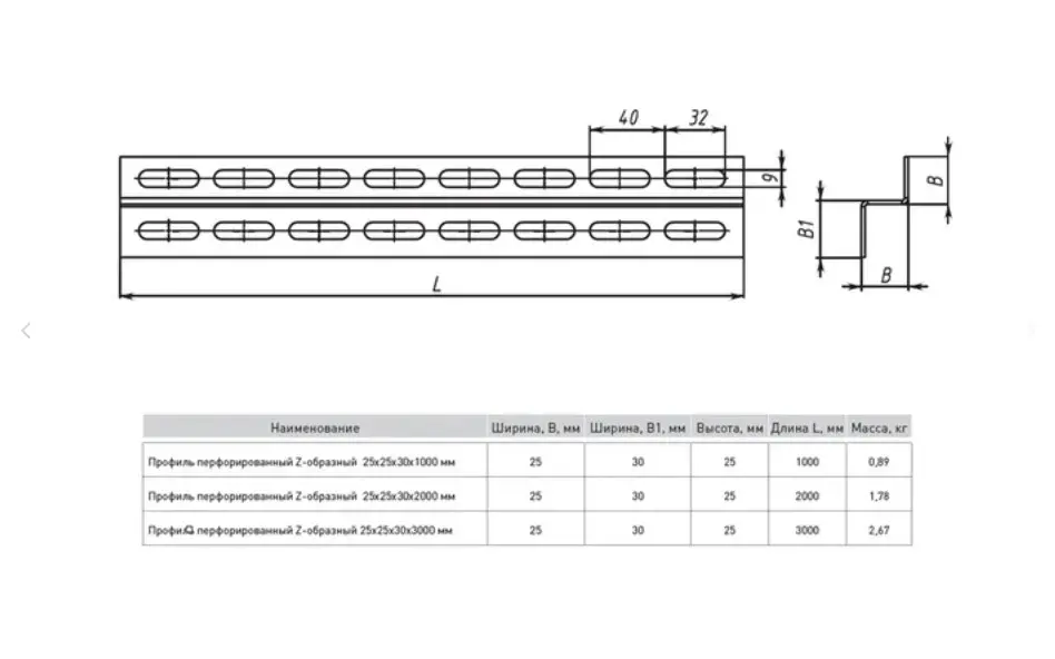 "Z-образные профили - это универсальный тип монтажных изделий, представляющий из себя перфорированный по двум сторонам профиль. Предназначен для легких и средних нагрузок и используется для прокладки металлических кабеленесущих систем, инженерных систем, а также для монтажа оборудования внутри металлических оболочек (шкафов). Также применяется в виде дополнительных опорных строительных конструкций. Для монтажа профиля к опорным конструкциям используются метизы М8."