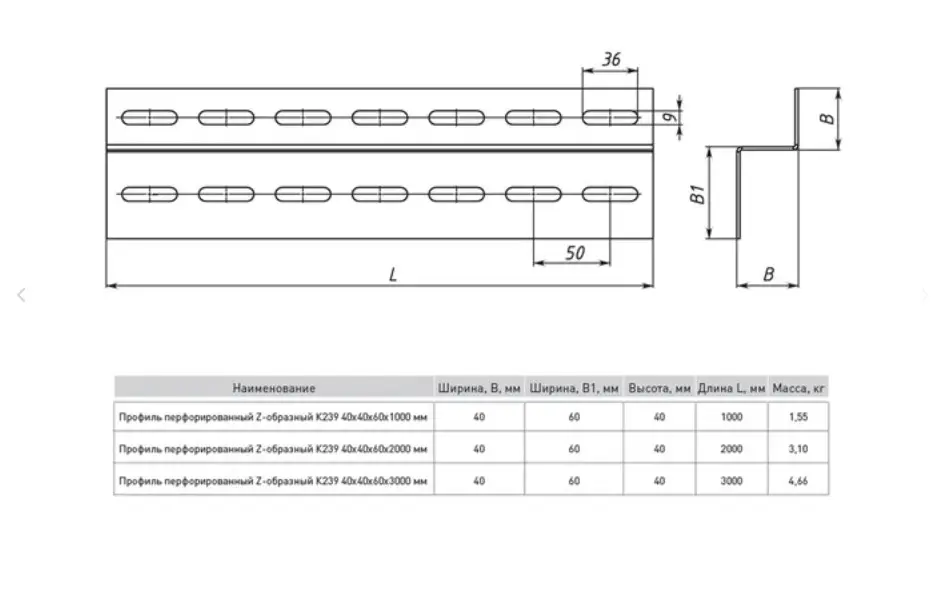 Профиль перфорированный Z-образный К239 40x60x3000 мм (2 мм) HDZ EKF