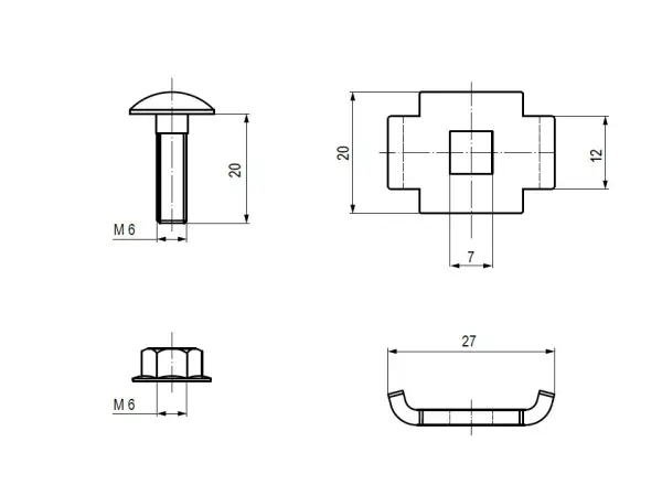 Винтовой соединительный комплект двойной 6x20 (Винт М6+гайка) (50 шт) EKF