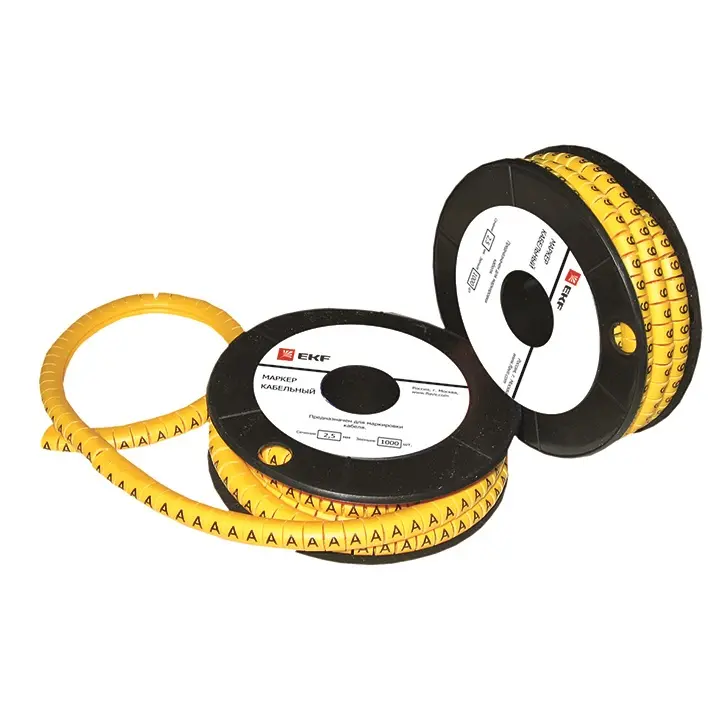 Пластиковый эластичный кабель-маркер EKF PROxima имеет на поверхности нестираемое обозначение цифр или букв. Он одевается на кабели и провода, чтобы присвоить проводнику обозначение. Например, произвести маркировку проводом по собираемой схеме, чтобы в дальнейшем всегда можно было идентифицировать участок собранной схемы и назначение проводника. С помощью комбинаций букв и цифр с помощью кабель-маркеров можно присвоить проводникам любые удобные для вас обозначения.