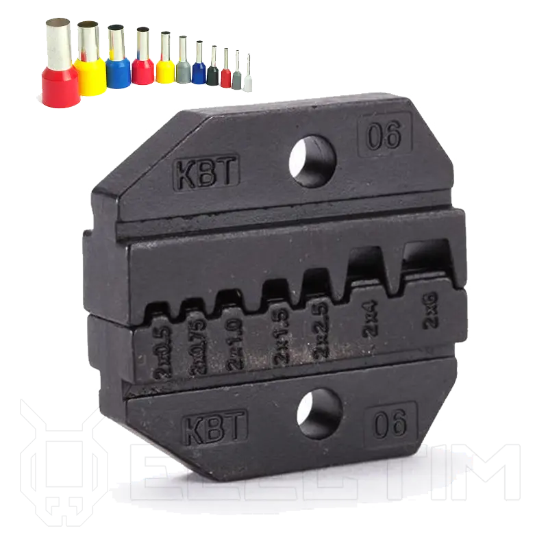Опрессовка двойных изолированных втулочных наконечников НШВИ (2) сечением 2х0.5-2x6 мм² |