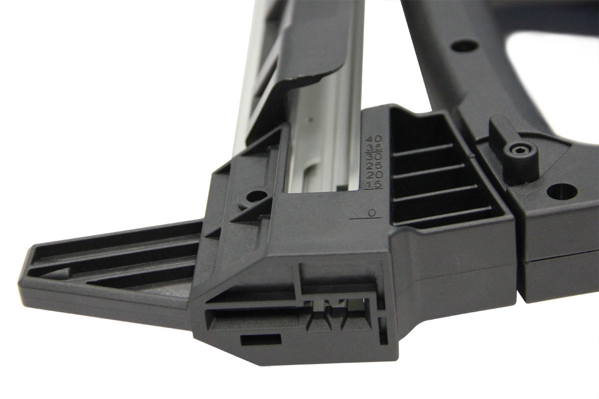 Имеется регулировка заглубления. Это делает выстрел мягче и уменьшает вероятность раскалывания пластика при монтаже кабель каналов.